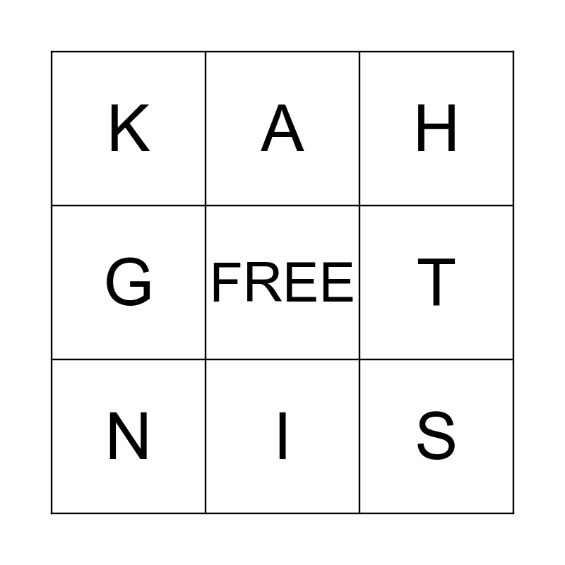 This bingo card has a free space and 8 words: T, H, A, N, K, S, G and I.