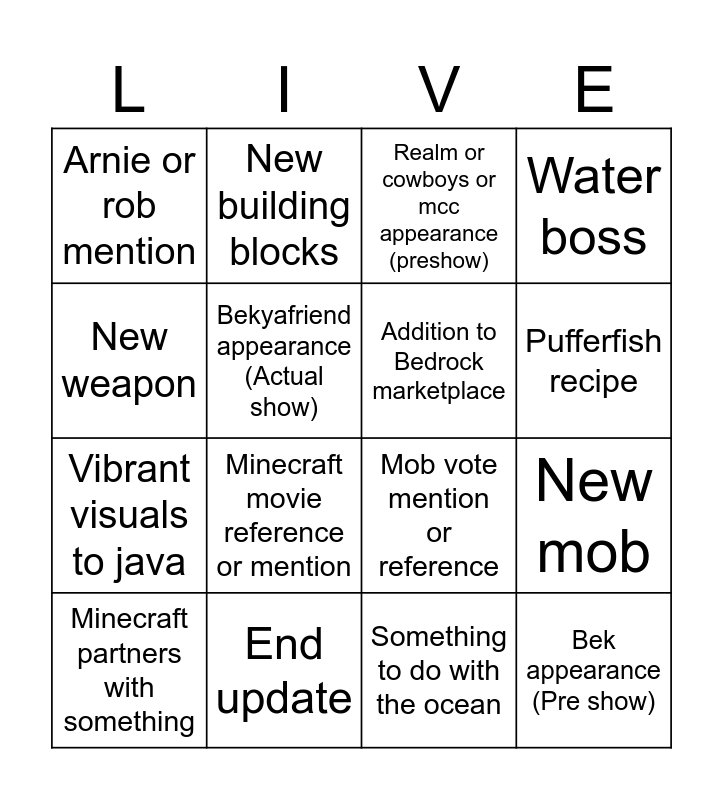 Minecraft update bingo | Minecraft Live Bingo | Minecraft Live Bingo | Minecraft movie bingo | MINECRAFT LIVE RAAAH