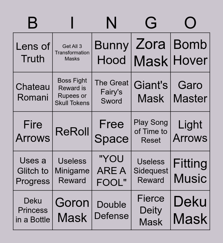 Majora's Mask Bingo | Majora's Mask BINGO | Majora Bingo | Majora Bingo | Joe Round 1 (Zelda Items)