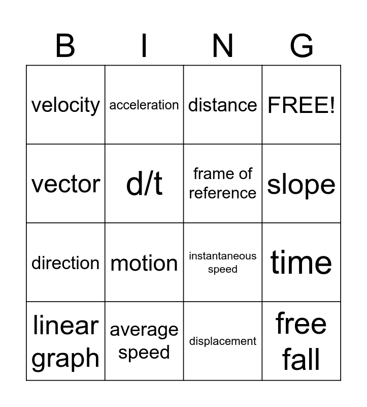 NFS Bingo | NFS Bingo | Motion Review | Motion Bingo | kinematics
