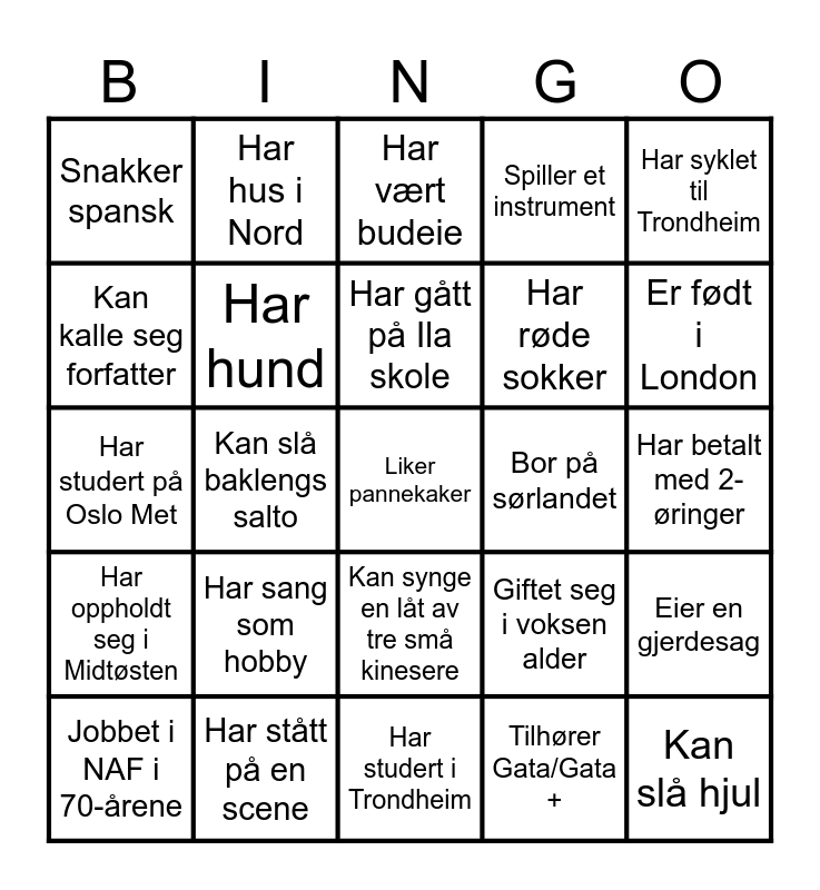 Bli kjent med bordet ditt | Bli kjent bingo | Menneskebingo | Bli kjent-Bingo | Finn en person (helst en du ikke kjenner) som...