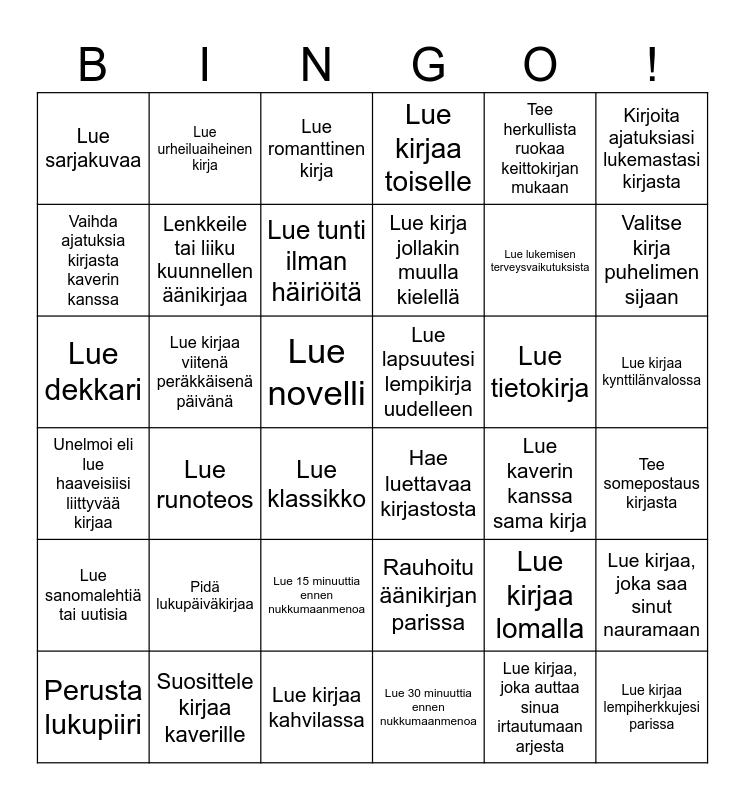 LUKUBINGO | Olen lukenut | Olen lukenut | Olen lukenut | Hyvinvointibingo