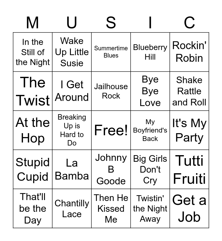 Sock Hop | DCSM Music Bingo | 50's MUSIC BINGO | Sock Hop Beefs | Oldies