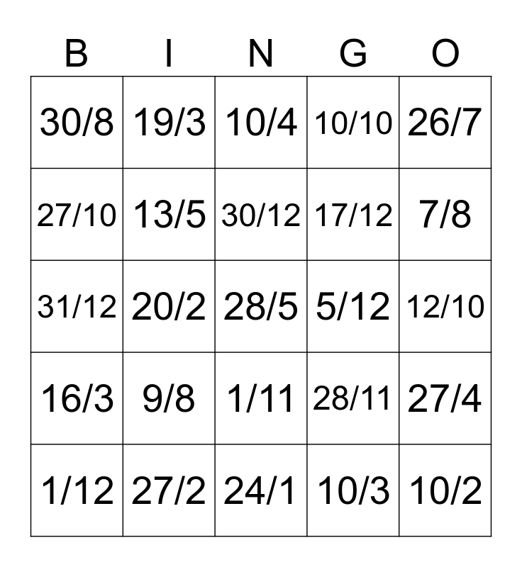Fractions | Fechas de Cumpleaños | BINGO DE FUNÇÕES | Integer Bingo | Fechas de Cumpleaños