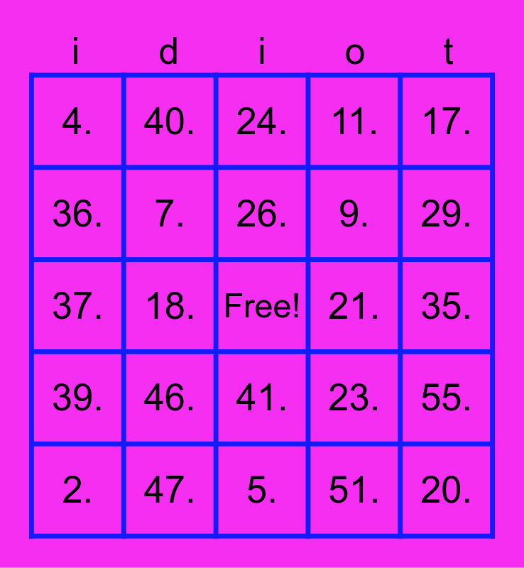 This bingo card has a free space and 56 words: 1., 2., 3., 4., 5., 6., 7., 8., 9., 10., 11., 12., 13., 14., 15., 16., 17., 18., 19., 20., 21., 22., 23., 24., 25., 26., 27., 28., 29., 30., 31., 32., 33., 34., 35., 36., 37., 38., 39., 40., 41., 42., 43., 44., 45., 46., 47., 48., 49., 50., 51., 52., 53., 54., 55. and 56..