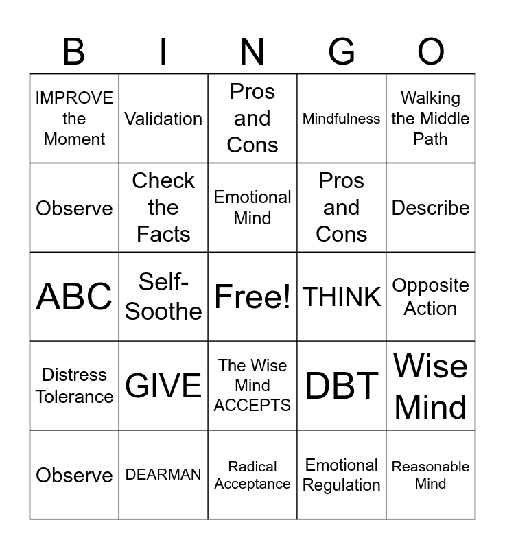 DBT | DBT Bingo | DBT Bingo | DBT Bingo | DBT Skills Bingo