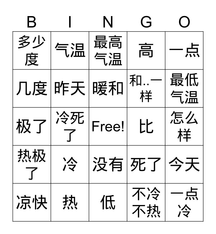 天气 | Chinese | weather | Weather in Chinese | Bingo