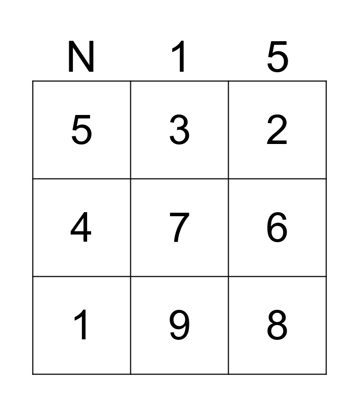 This bingo card has 9 words: 1, 2, 3, 4, 5, 6, 7, 8 and 9.