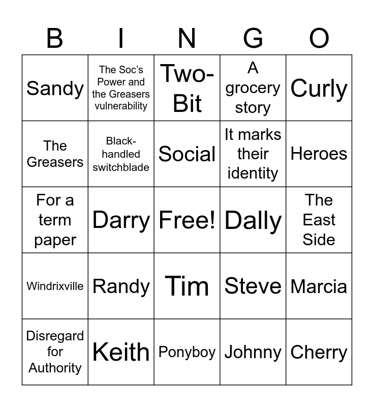 The Outsiders Bingo | Outsiders Bingo | The Outsiders Bingo | The Outsiders Chapter 7 | The Outsiders Characters