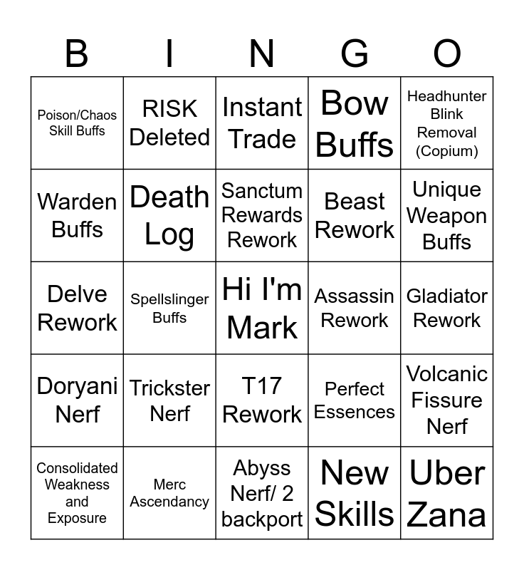 Rene's Leaguestart Buff | lost ark KR test server bingo | Canadians360 Cope Bingo | Path Of Exile | path of exile 3.25 copium
