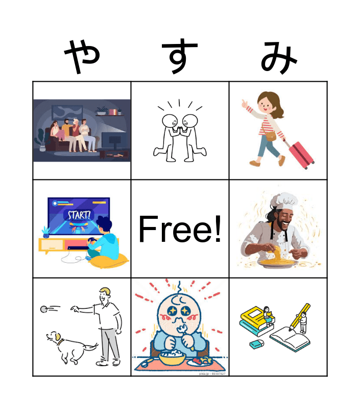 ひらがなBingo | J2 Human Bingo | Nihongo Particles L1-L4 | クン チュー アライ K。 | ビンゴ!