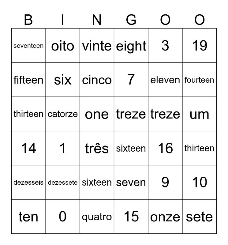 ⚠ This card has duplicate items: zero (6), um (4), dois (4), três (4), quatro (4), cinco (4), seis (4), sete (4), oito (4), nove (4), dez (4), onze (4), doze (4), treze (4), catorze (4), quinze (4), dezesseis (4), dezessete (4), dezoito (4), dezenove (4), vinte (4), 0 (7), 1 (4), one (3), 2 (4), two (3), 3 (3), three (3), 4 (4), four (3), 5 (3), five (4), 6 (3), six (4), 7 (4), seven (3), 8 (4), eight (2), 9 (4), nine (3), 10 (3), ten (4), 11 (3), eleven (3), 12 (2), twelve (4), 13 (3), thirteen (4), 14 (4), fourteen (3), 15 (4), fifteen (2), 16 (3), sixteen (4), 17 (2), seventeen (4), 18 (3), eighteen (4), 19 (3), nineteen (3), 20 (4), twenty (2)