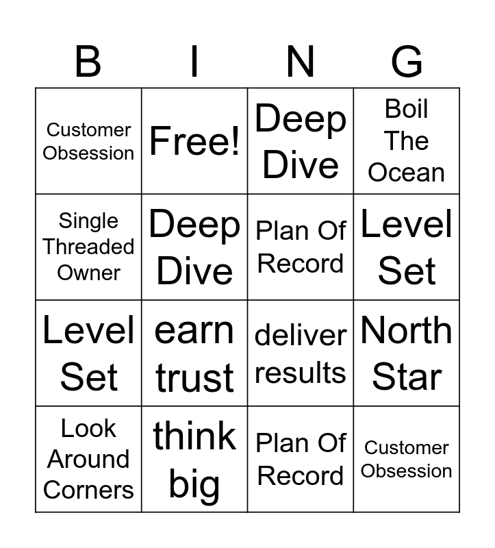 ⚠ This card has duplicate items: Plus One (2), Double Click (2), North Star (2), Look Around Corners (4), Customer Obsession (2), Plan Of Record (2), Single Threaded Owner (2), Boil The Ocean (2), Level Set (2), Deep Dive (2), Connect The Dots (2), How do we win (2)