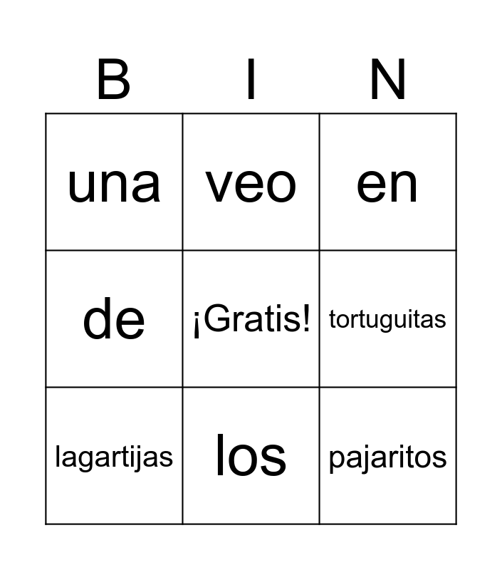 This bingo card has a free space and 18 words: Yo, estoy, en, una, tienda, de, mascotas, veo, los, perritos, gatitos, pajaritos, conejitos, tortuguitas, lagartijas, me, gusta and la.