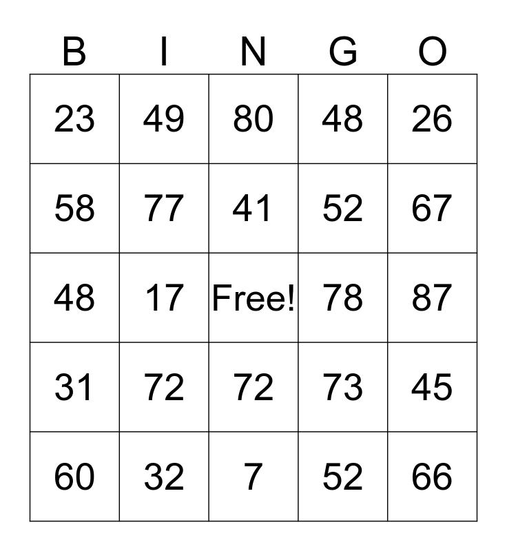 This bingo card has a free space and 137 words: 1, 2, 3, 4, 5, 6, 7, 8, 9, 10, 11, 12, 13, 14, 15, 16, 17, 18, 19, 20, 21, 22, 23, 24, 25, 26, 27, 28, 29, 30, 31, 32, 33, 34, 35, 36, 37, 38, 39, 40, 41, 42, 43, 44, 45, 46, 47, 48, 49, 50, 51, 52, 53, 54, 55, 56, 57, 58, 59, 60, 61, 62, 63, 64, 65, 66, 67, 68, 69, 70, 71, 72, 73, 74, 75, 76, 77, 78, 79, 80, 81, 82, 83, 84, 85, 86, 87, 88, 89, 90, 44, 45, 46, 47, 48, 49, 50, 51, 52, 53, 54, 55, 56, 57, 58, 59, 60, 61, 62, 63, 64, 65, 66, 67, 68, 69, 70, 71, 72, 73, 74, 75, 76, 77, 78, 79, 80, 81, 82, 83, 84, 85, 96, 87, 88, 89 and 90.
