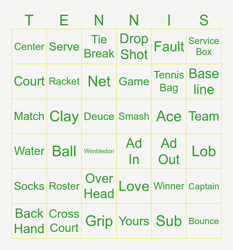 TENNIS BINGO | ESTA Bingo | TENNIS | WB Tennis Bingo | Basketball Bingo