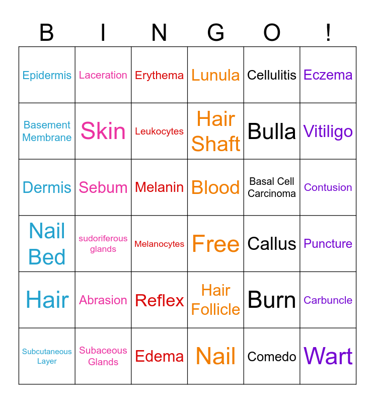 Integumentary System Bingo | Bio Bingo | Chapter 6- Skin | Chapter 6- Skin | Integumentary System