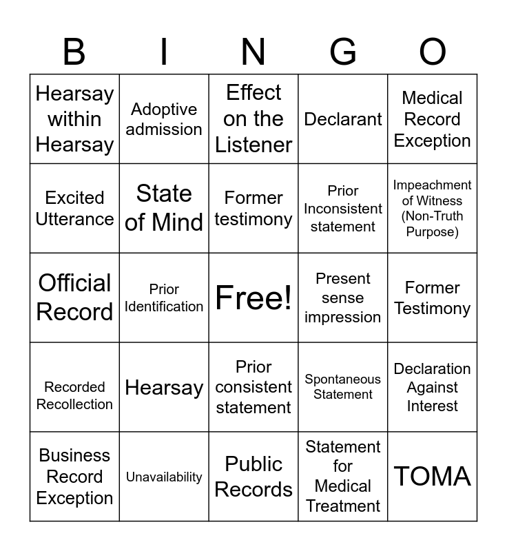 FRE Hearsay Bingo | FRE Hearsay Bingo | FRE Hearsay Bingo | FRE Hearsay Bingo | EVIDENCE BINGO