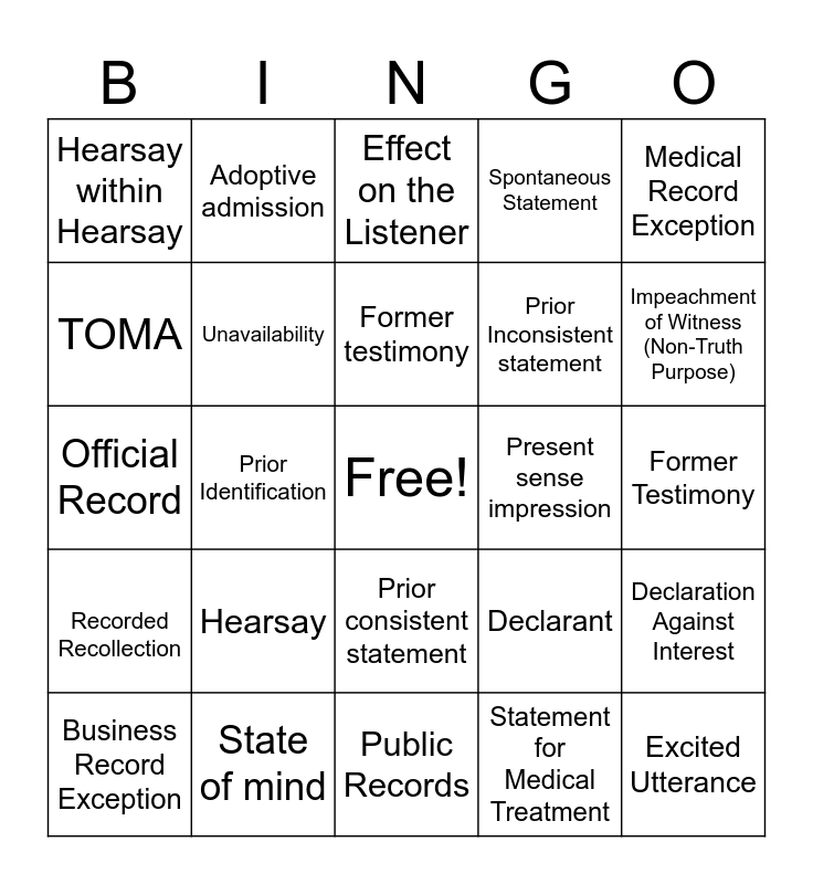 FRE Hearsay Bingo | FRE Hearsay Bingo | FRE Hearsay Bingo | FRE Hearsay Bingo | EVIDENCE BINGO