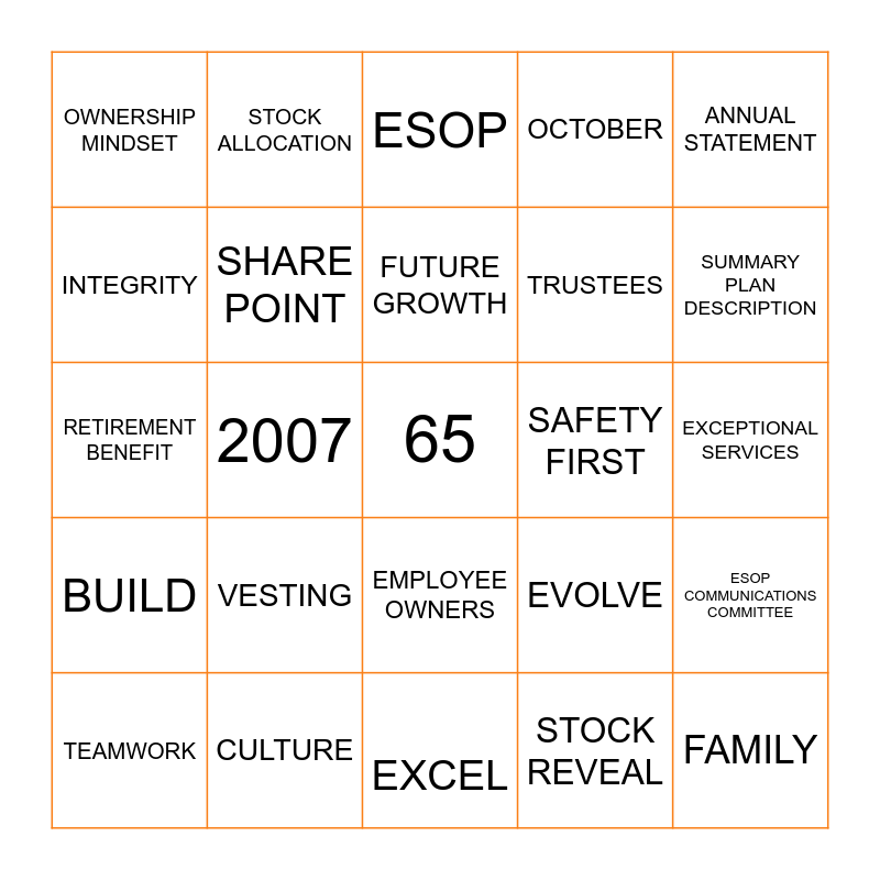 ESOP Bingo | FEI ESOP Bingo | SYRACUSE LABEL ESOP BINGO | ESOP Bingo | SYRACUSE LABEL ESOP BINGO