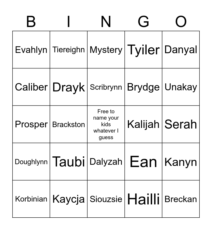 This bingo card has a free space and 37 words: Kayd, Seiraux, Liem, Drayk, Kanyn, Taubi, Scribrynn, Wysdim, Danyal, Aumony, Brackston, Tyiler, Breckan, Serah, Caliber, Doughlynn, Freedom, Mystery, Dalyzah, Kalijah, Evahlyn, Unakay, Korbinian, Siouzsie, Kyuannu, Hailli, Tiereighn, Audreigh, Whyett, Loic, Januarie, Kaycja, Prosper, Actson, Ean, Brydge and quinson.
