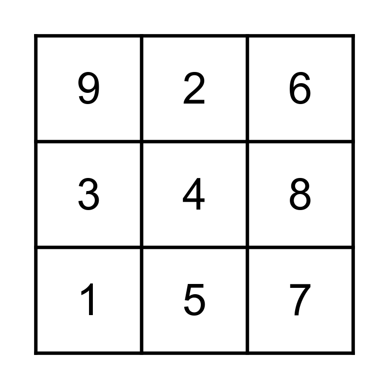 This bingo card has 9 words: 1, 6, 2, 3, 9, 8, 4, 7 and 5.