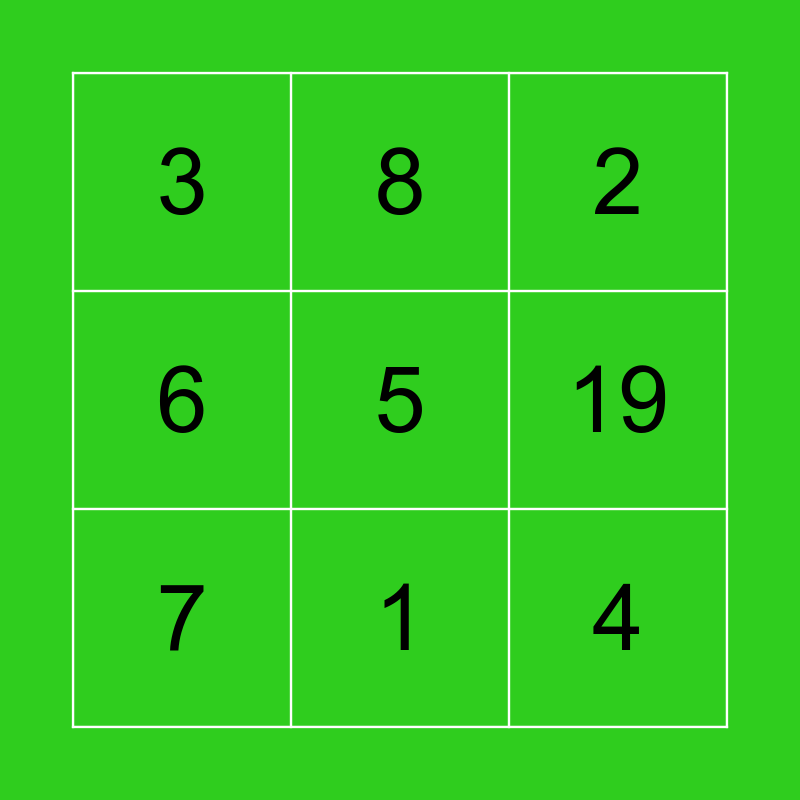 This bingo card has a free space and 10 words: 1, 2, 3, 4, 6, 7, 8, 9, 19 and 20.