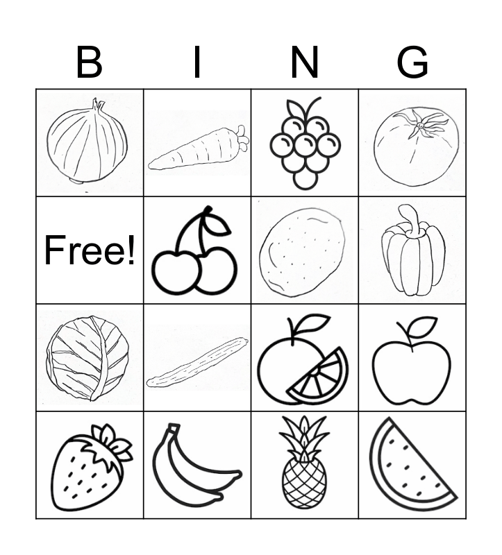 Fruit and Vegetable BINGO Card
