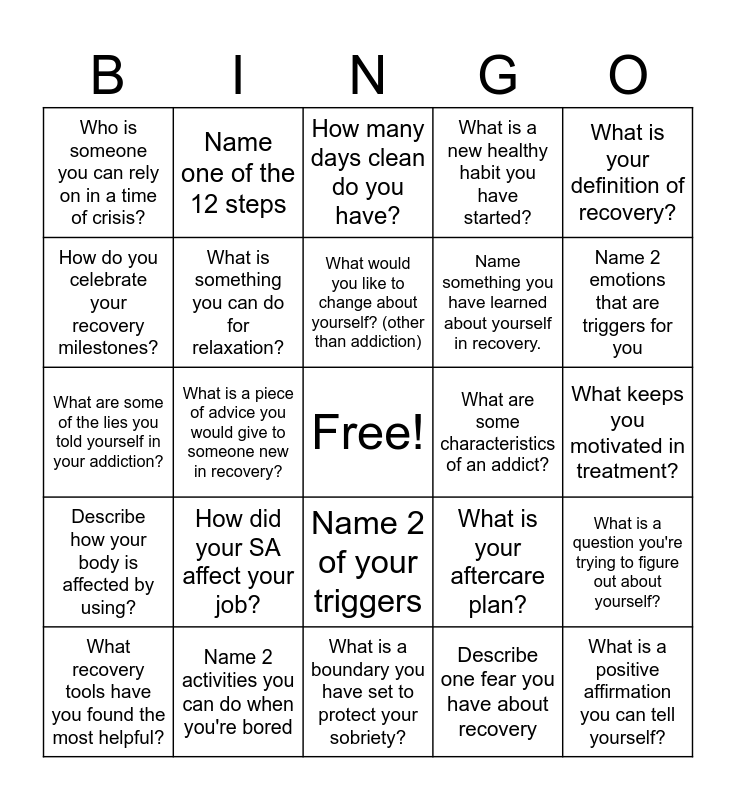 Recovery Bingo | Recovery Bingo! | Recovery Bingo! | Recovery Bingo! | Recovery Bingo!