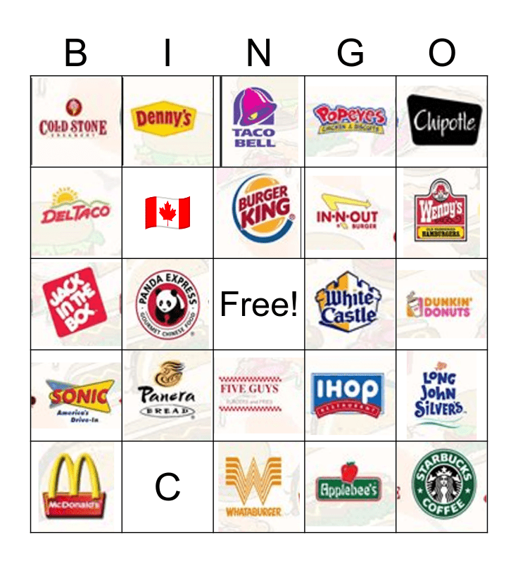 This bingo card has 23 images, a free space and 3 words: C, 🇨🇦 and 🇨🇳.
