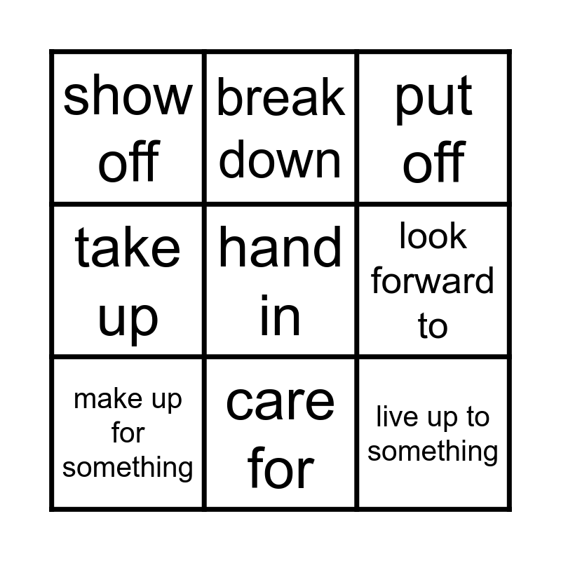 Phrasal verbs Bingo | Phrasal Verbs | Phrasal Verbs | Phrasal Verbs | Phrasal verbs bingo