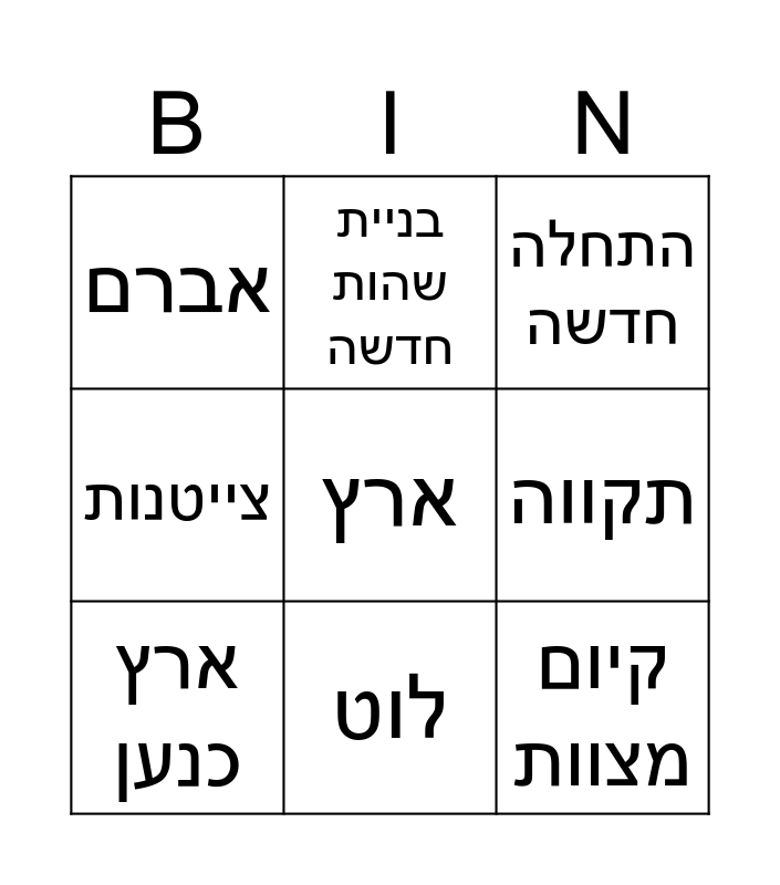 פרשת לך לך | פרשת לך לך | ברית עם אברהם | שירים | Patriarchs and Matriarchs Bingo