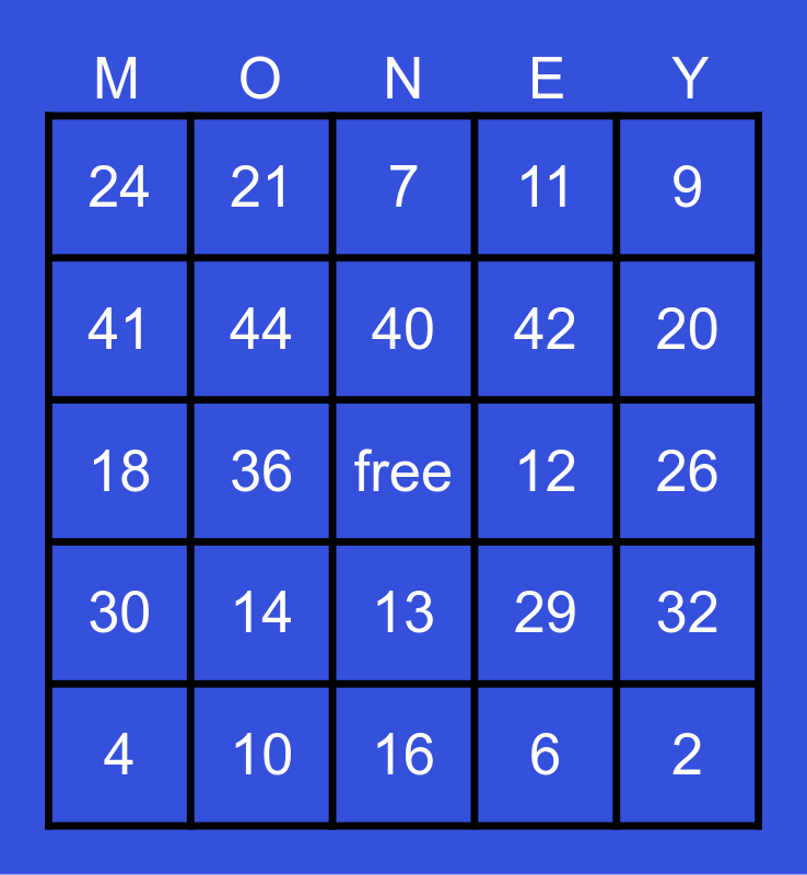 This bingo card has a free space and 45 words: 1, 2, 3, 4, 5, 6, 7, 8, 9, 10, 11, 12, 13, 14, 15, 16, 17, 18, 19, 20, 21, 22, 23, 24, 25, 26, 27, 28, 29, 30, 31, 32, 33, 34, 35, 36, 37, 38, 39, 40, 41, 42, 43, 44 and 45.