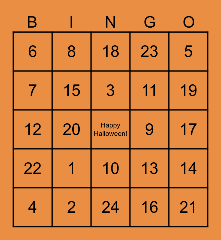 This bingo card has a free space and 24 words: 1, 2, 3, 4, 5, 6, 7, 8, 9, 10, 11, 12, 13, 14, 15, 16, 17, 18, 19, 20, 21, 22, 23 and 24.