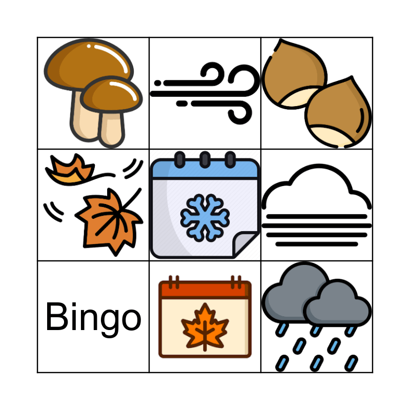 This bingo card has 8 images and 1 words: Bingo.
