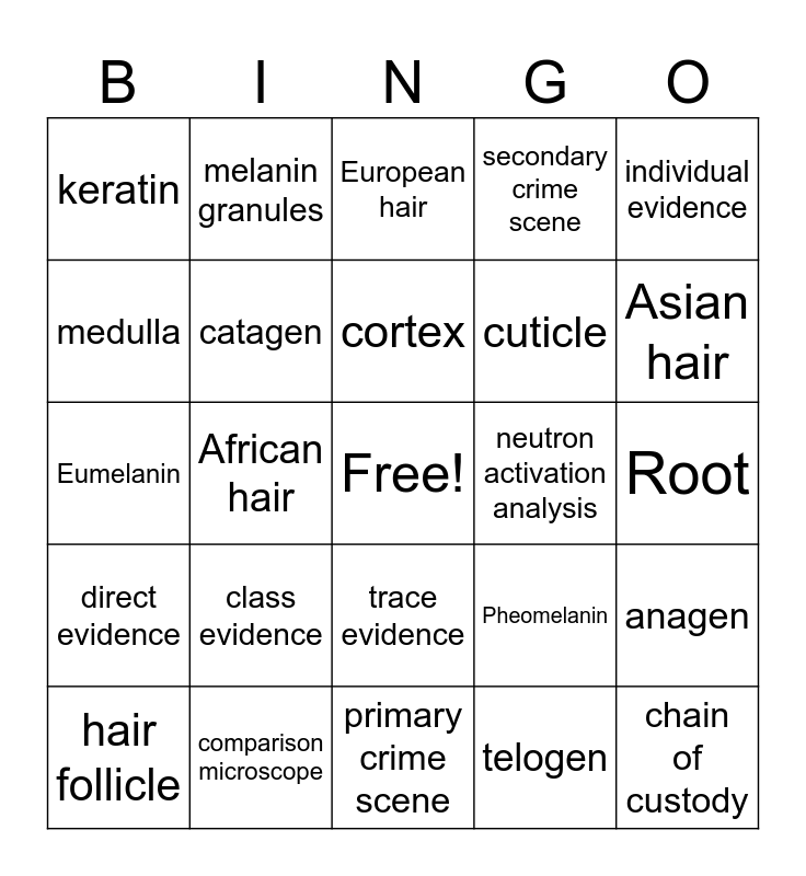 Forensic Hair Bingo | Forensic ScienceIA | Forensic Science | Forensic Science | Forensics