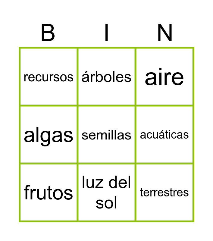 This bingo card has 33 words: Plantas, raíces, hojas, tallo, flores, frutos, semillas, arbustos, árboles, agua, luz del sol, aire, tierra, minerales, necesidades, partes de las plantas, alimento, oxígeno, importancia de las plantas, usos de las plantas, ornamentación, medicinal, recursos, cactus, hierbas, suculentas, algas, terrestres, acuáticas, dióxido de carbono, nutrientes, suelo and ciclo de vida.