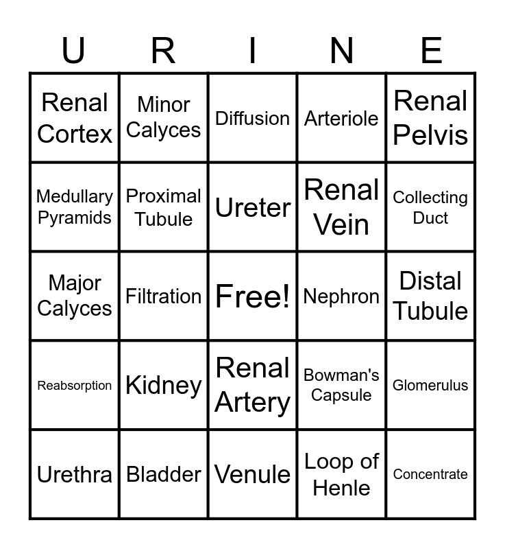 Excretory System Bingo | Urinary System | Urinary System | Nephron Function | Urinary Anatomy