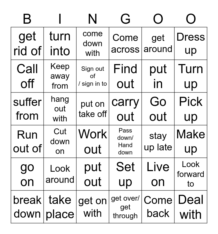 bingo phrasal verbs unit 1,2,3 | Phrasal Verbs | Common Phrasal Verbs | Phrasal Verbs | Phrasal Verb Bingo