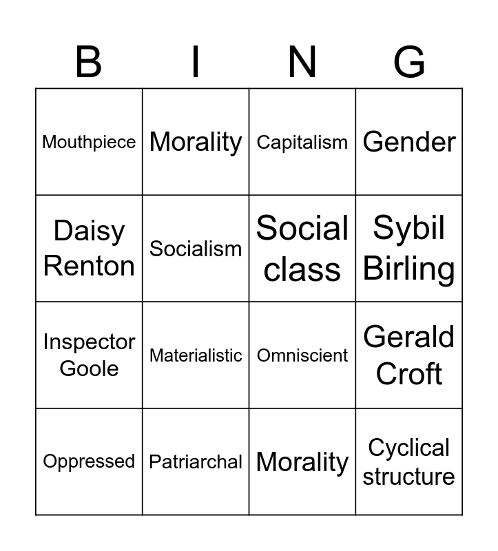 An Inspector Calls | An Inspector Calls Bingo | An Inspector Calls | An Inspector Calls | GCSE Literature Characters