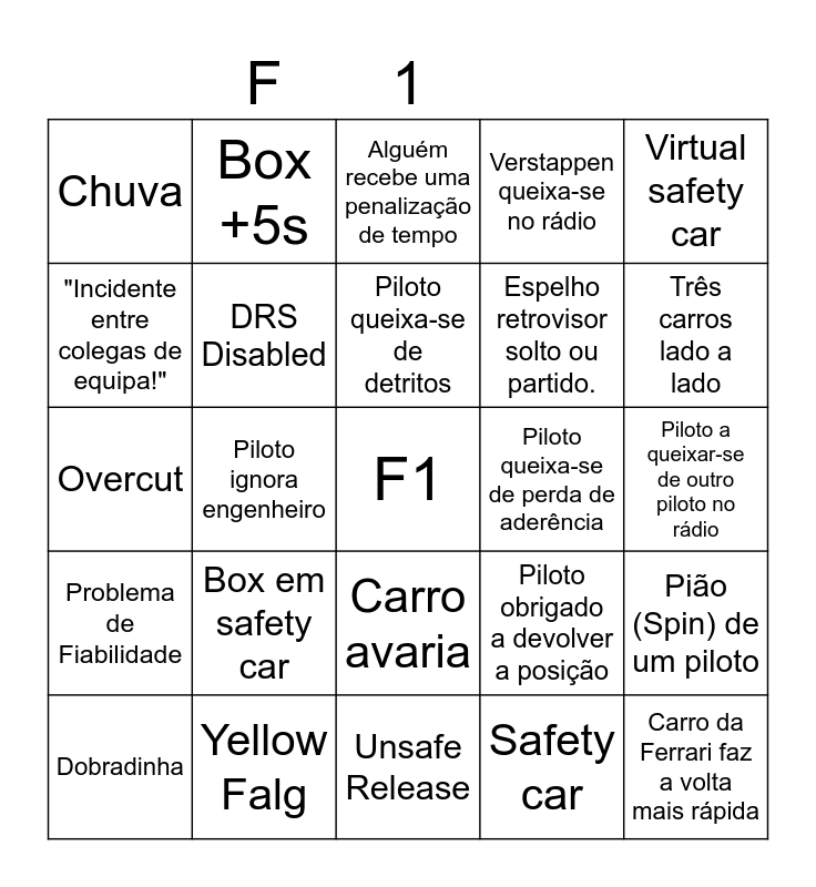 Bingo do GP de Portugal | F1 - "Corrida" | F1 Temporada 2022 | BINGO DA FORMULA 1 2025 🔥🔥🔥🔥 - | Bingo 1