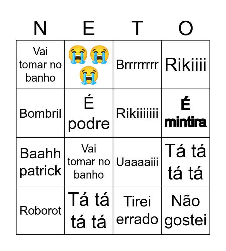 ⚠ This card has duplicate items: É mintira (2), Vai tomar no banho (2), Tá tá tá tá (2)