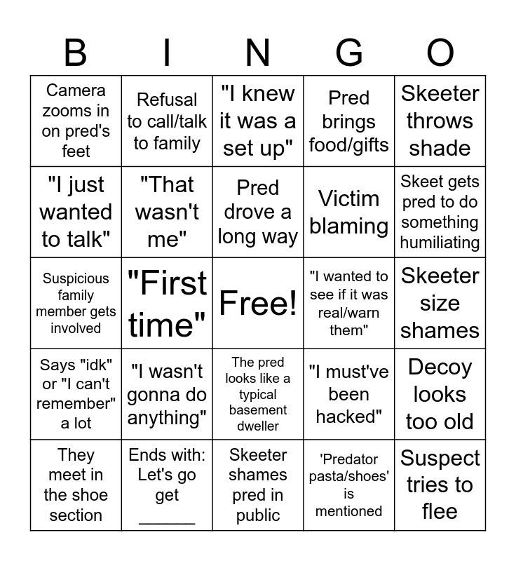To Skeet a Bingo | Predator Catch Bingo | To Catch a Predator Bingo | CHOMO BINGO | CHOMO BINGO