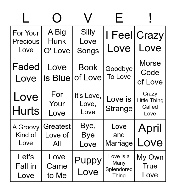 MUSIC BINGO 32 - Love, Love, | MUSIC BINGO 32 - Love, Love, | Love Songs | LOVE | LOVE
