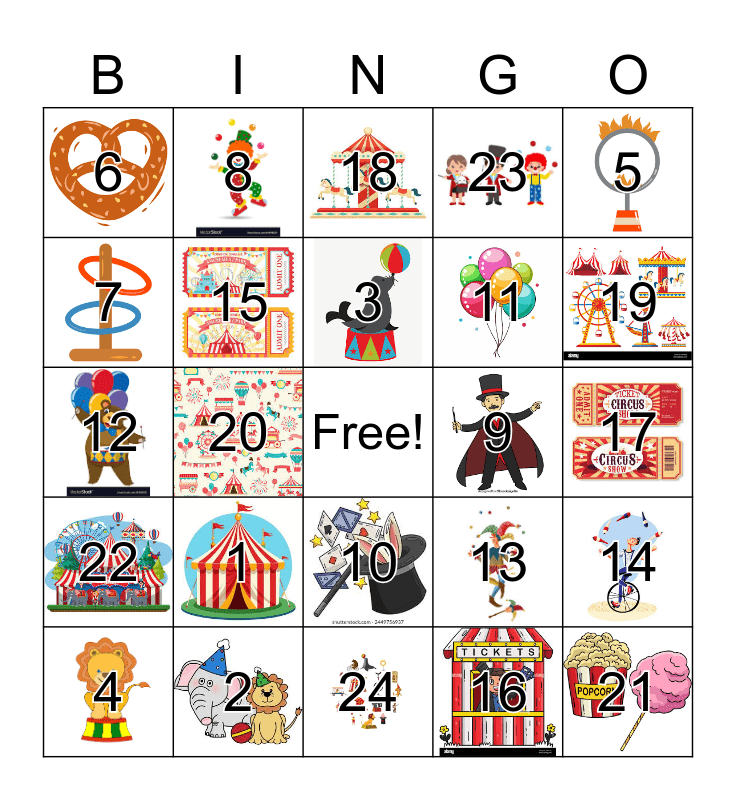 This bingo card has 24 images, a free space and 24 words: 1, 2, 3, 4, 5, 6, 7, 8, 9, 10, 11, 12, 13, 14, 15, 16, 17, 18, 19, 20, 21, 22, 23 and 24.