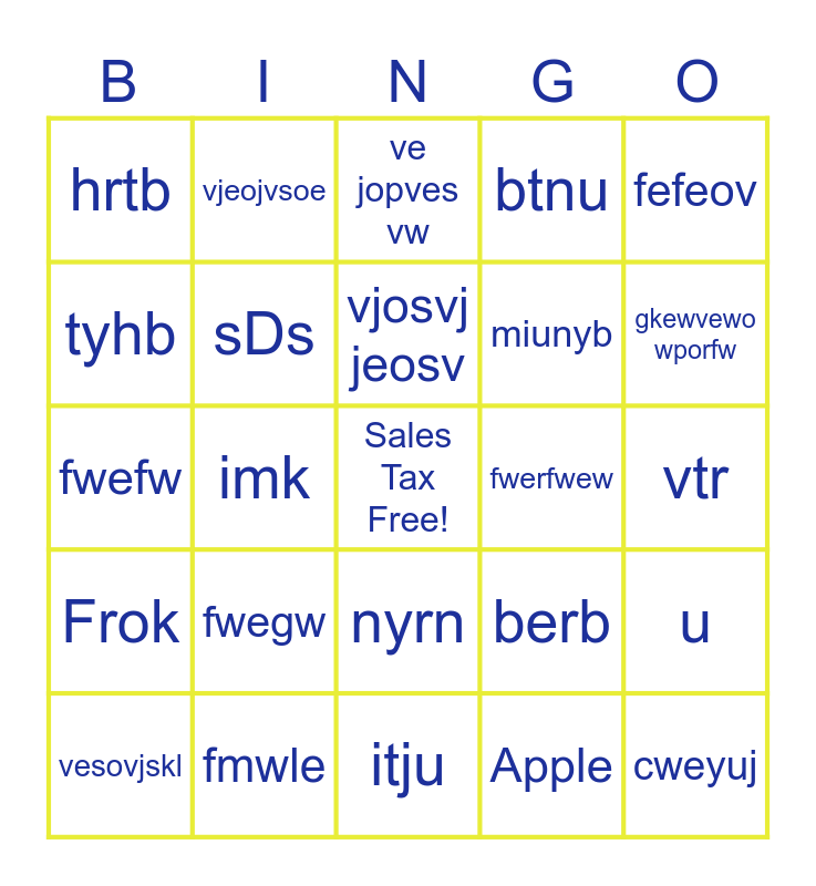 This bingo card has a free space and 34 words: Scrapple, Apple, Dog, Fog, Frok, sDs, fefeov, vesovjskl, vjeojvsoe, voesjv vnkoesvj, vjosvj jeosv, ve jopves vw, fjewo wrfw, fjef, fwerfwew, gkewvewo wporfw, fmwle, fwefw, fwegw, berb, nyrn, ymtmty, hrtb, vtr, itju, cweyuj, btnu, ebyu, miunyb, tyhb, ctyuu, imk, u and mtnrscrtd.