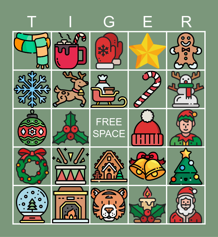 This bingo card has 24 images and a free space.