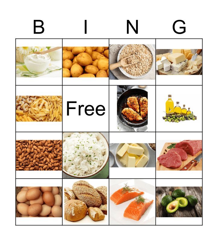 Food Group Bingo Card
