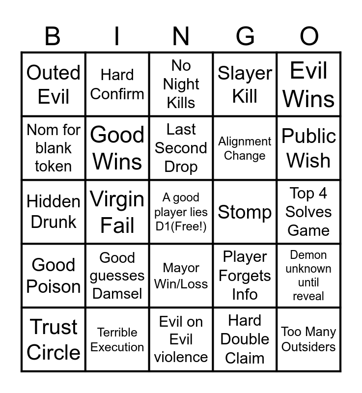 BOTC Bingo | BOTC Bingo | BOTC | BOTC Bingo | ToS 2 Bingo