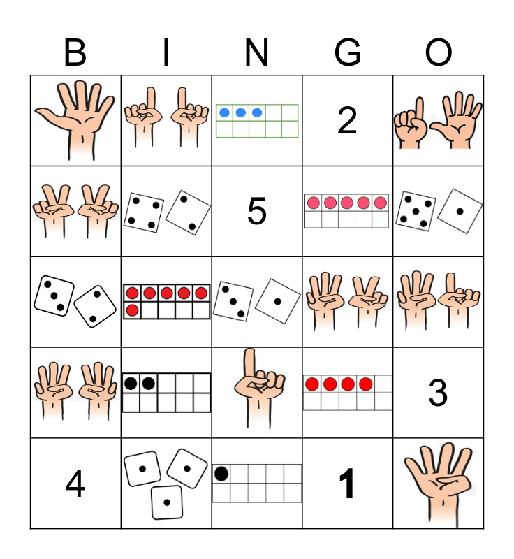 This bingo card has 24 images and 6 words: 1, 2, 3, 4, 5 and 6.
